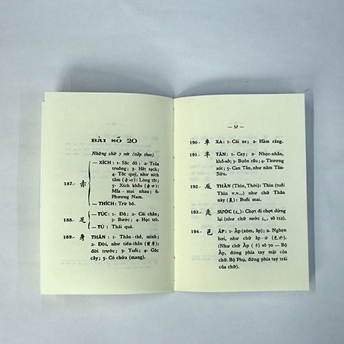 "Sách tự học chữ hán tập I" - học 245 bộ chữ hán. Cũng giống như học chữ quốc ngữ thì trước tiên phải học 29 chữ cái, học cả chữ, nghĩa và tập viết. Trong mỗi bài học đòi hỏi người học phải:
